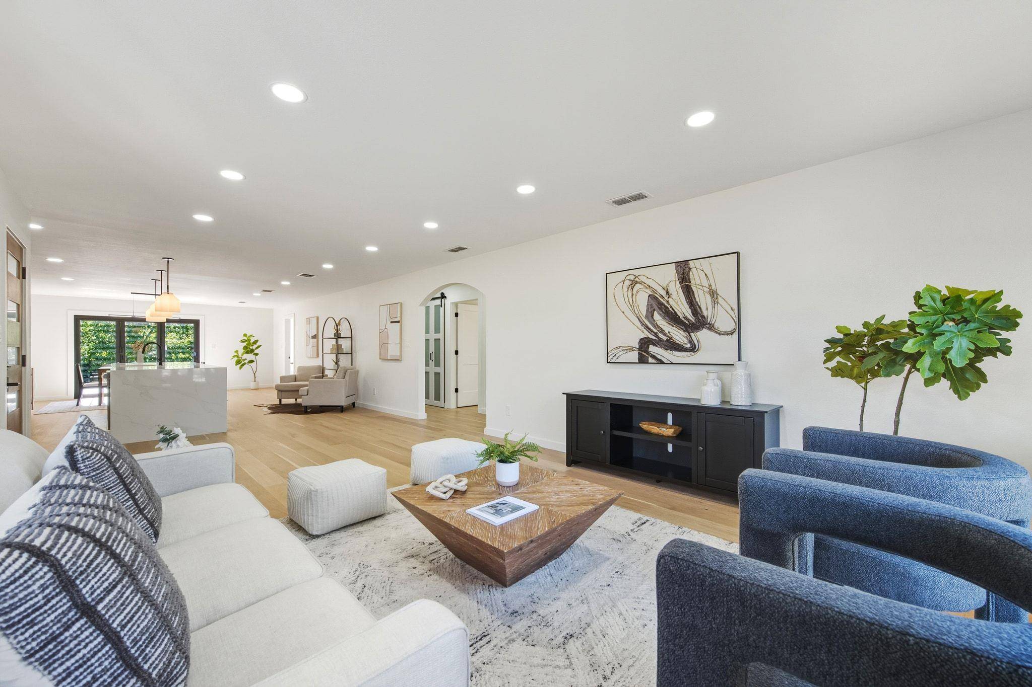 Interior details include soft-close cabinetry, custom tilework, quartz countertops, and recessed lighting. A two-car covered carport with storage adds functionality, and a bid is available to convert it to a full garage if desired.